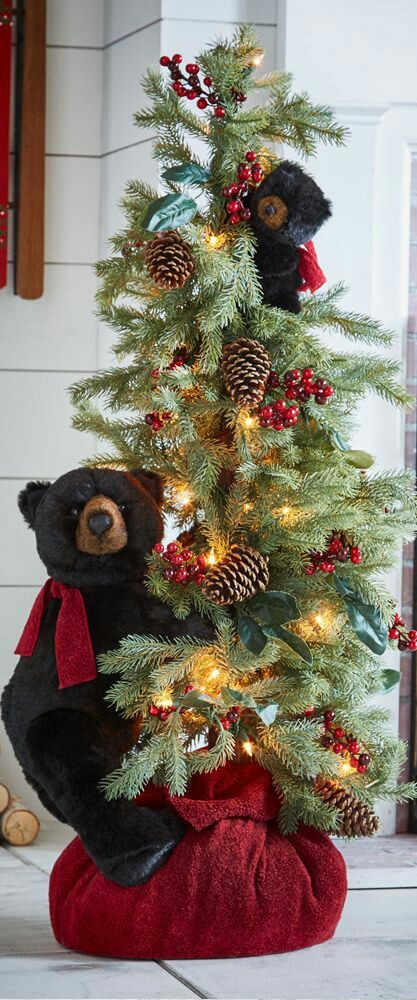 * El uso de osos y otros muñecos de peluche de tamaño grande, colgados o puestos al pie del árbol es una opción muy llamativa sobre todo si hay niños pequeños en casa